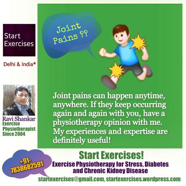 Physiotherapy, Exercises for On and Off Joint Pains! 10 Sep 2017 Ravi Shankar - CEO, Physical Rehab Business Consultant (India) Joint pains happening again and again? Avail my experienced and expert opinion for exercises and physiotherapy. Write to me at startexercises@gmail.com.