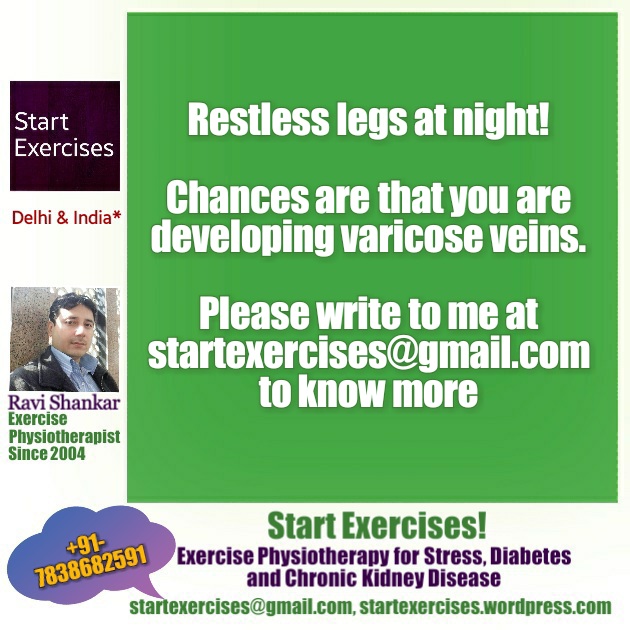 Physiotherapy is Useful in Varicose Veins! 5 Oct 2017 Ravi Shankar - CEO, Physical Rehab Business Consultant (India) Restless legs affect one’s night sleep and the required relaxation. Write to me at startexercises@gmail.com for guidance.
