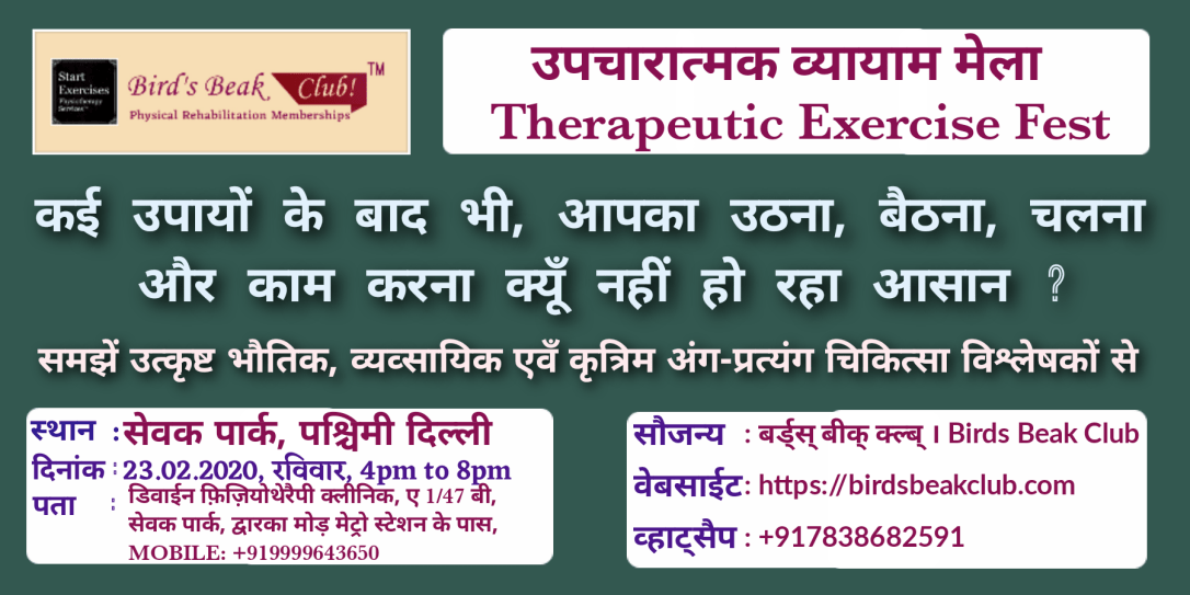 Bird’s Beak Club and its Therapeutic Exercise Fest program are initiatives of Start Exercises Physiotherapy Services, Delhi.