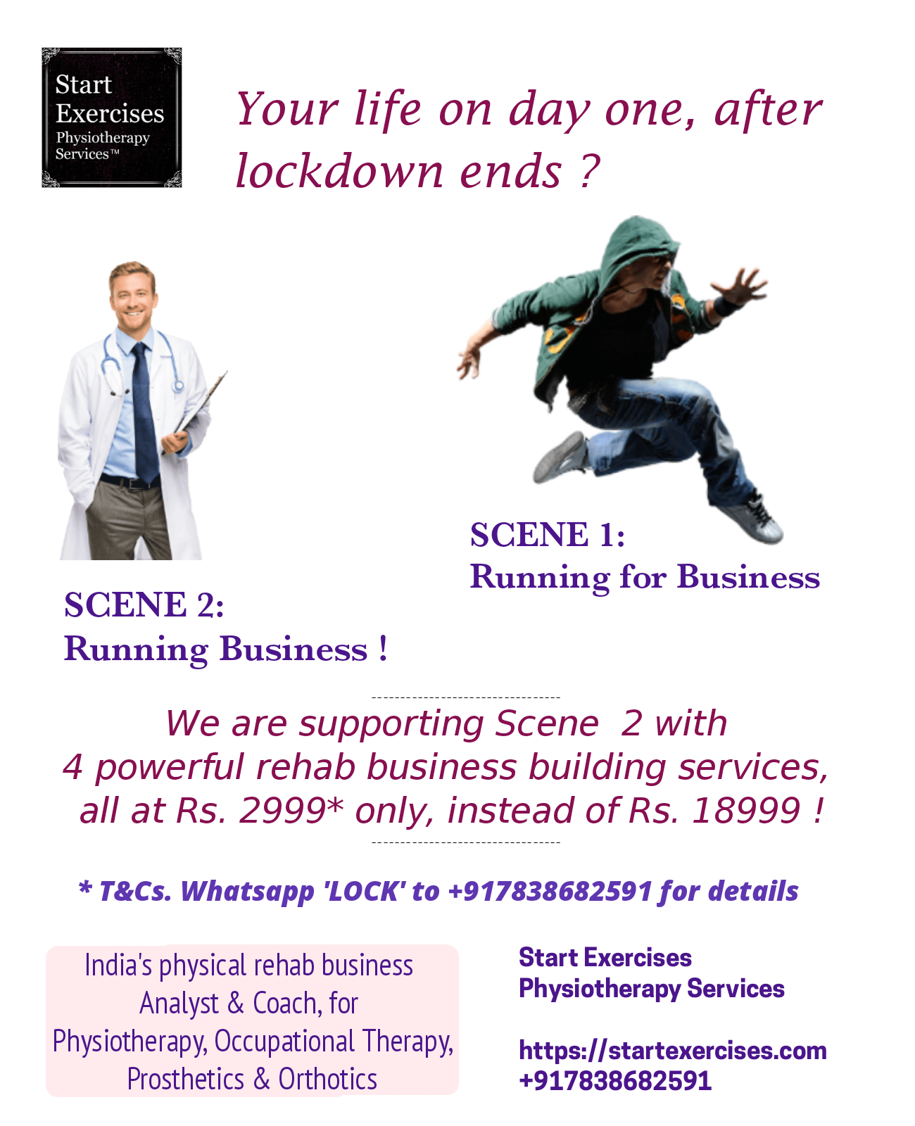 Start Exercises Physiotherapy Services is providing four of its amazing physical rehab business building services, together priced at Rs. 18999, at Rs. 2999 only – on pan India basis!