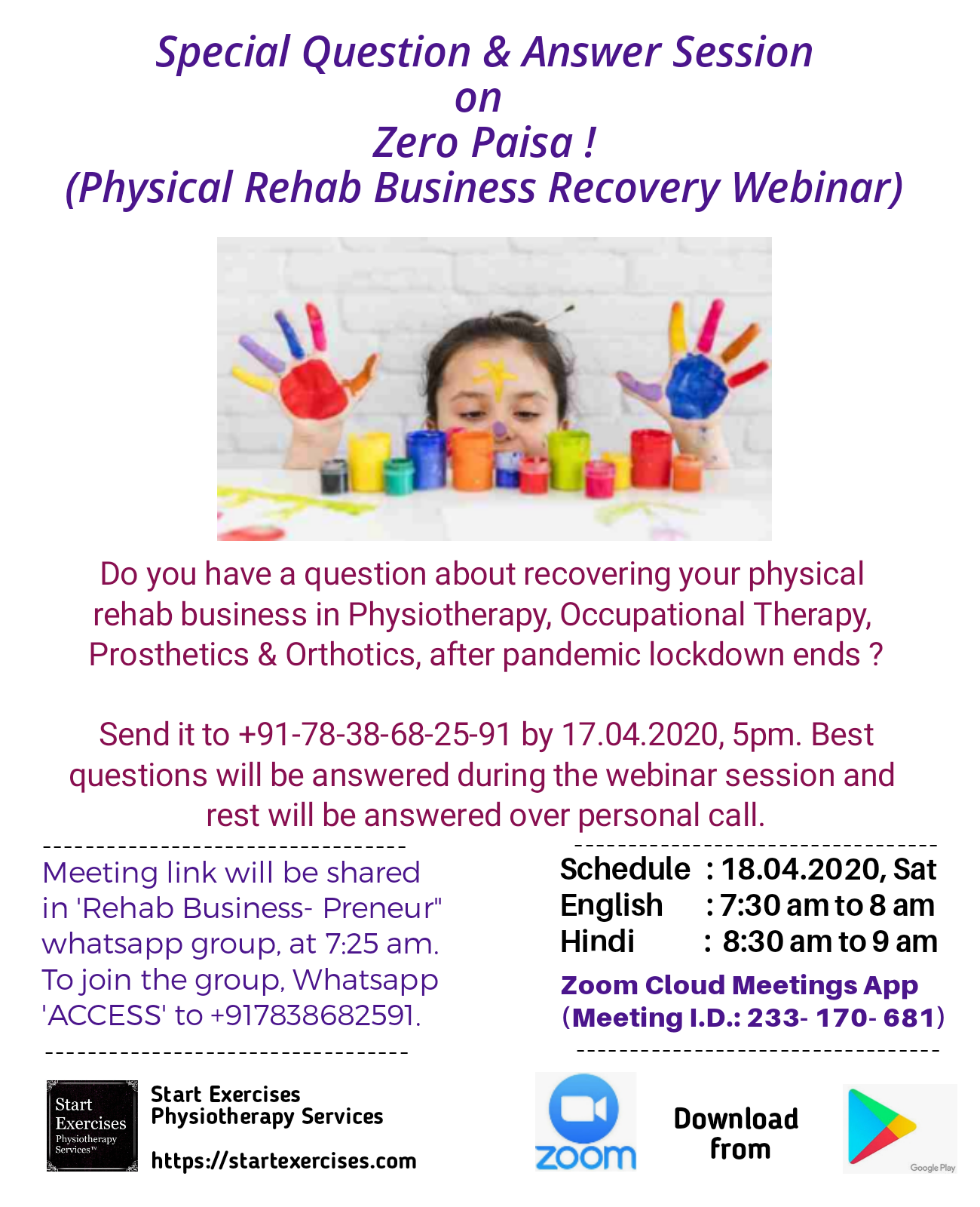 18th of April, 2020, Saturday will be Question & Answer Session in Zero Paisa – in English and in Hindi schedules.