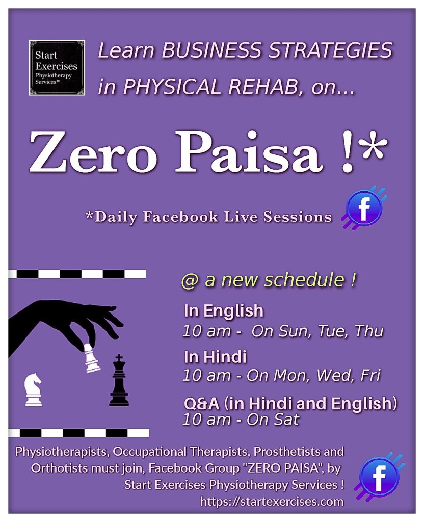 Zero Paisa – the daily webinar on Facebook Live- is now a permanent status online coaching program of Start Exercises Physiotherapy Services, and is absolutely going to stay free of cost ever!