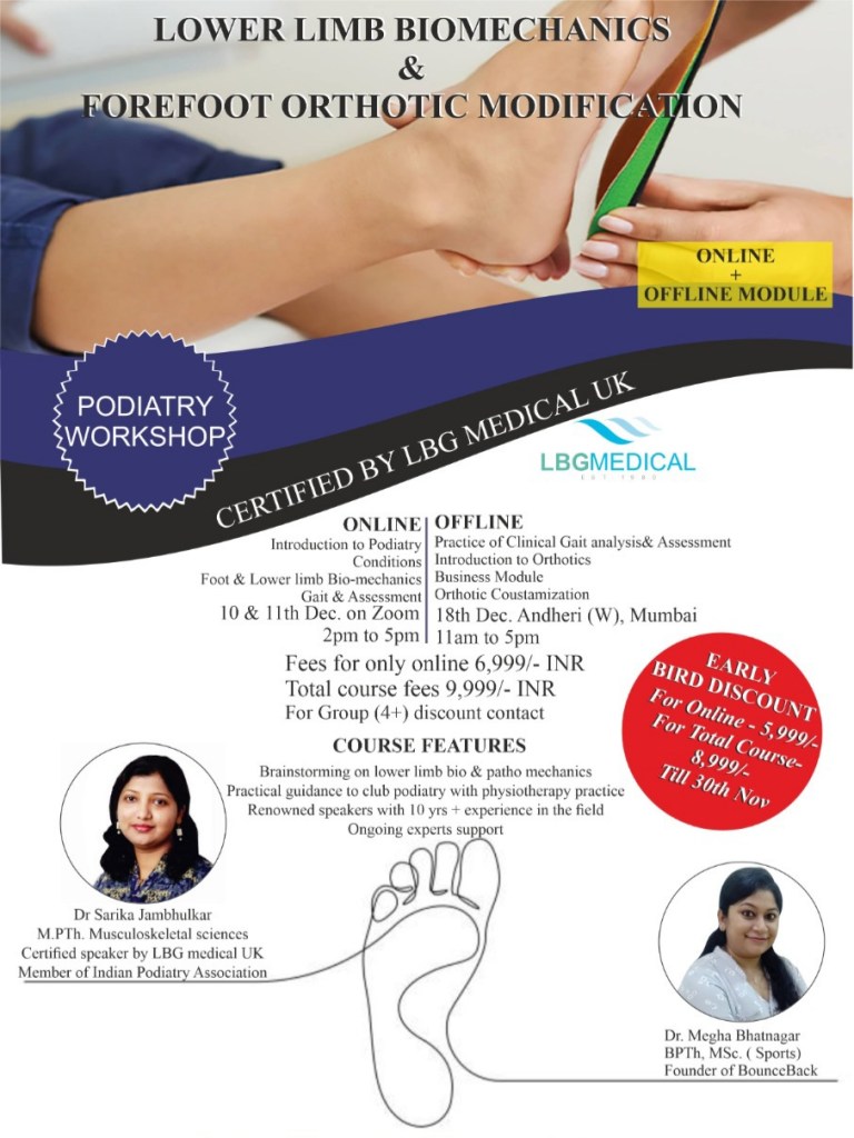 Online and Physical Workshop for Physical Rehab Specialists on Podiatry, in India, on 10, 11 and 18 December 2022